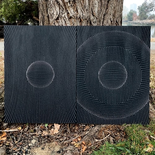 I have always been intimidated by painting, so one day I decided I'm just going to go for it. These pieces are inspired by aboriginal dot paintings, and the massive scale of the universe.